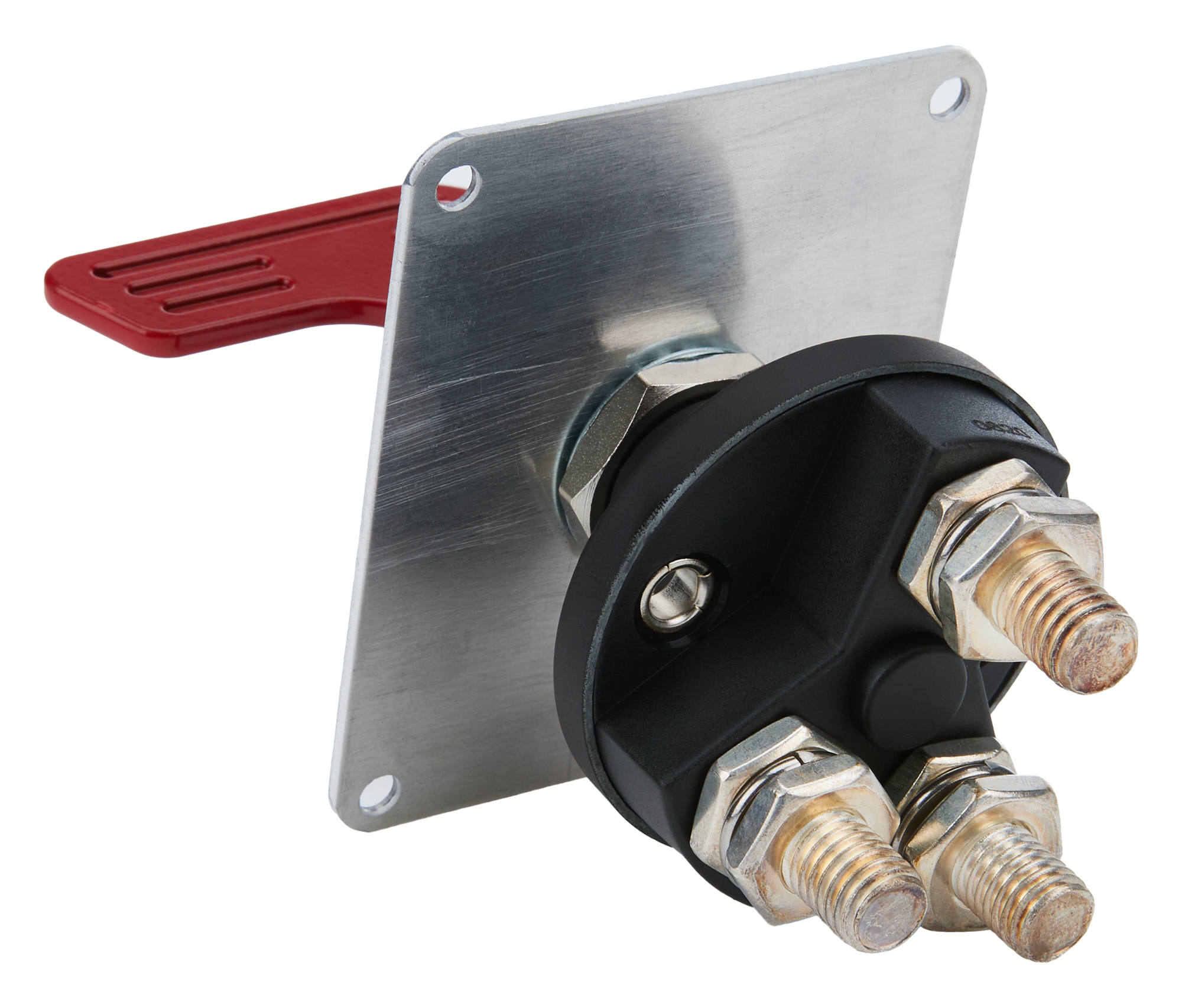 Battery Disconnect – Rotary Switch – Panel Mount – 160 Amps – 12V – Removable Key – Aluminum Panel Included – Red – Each