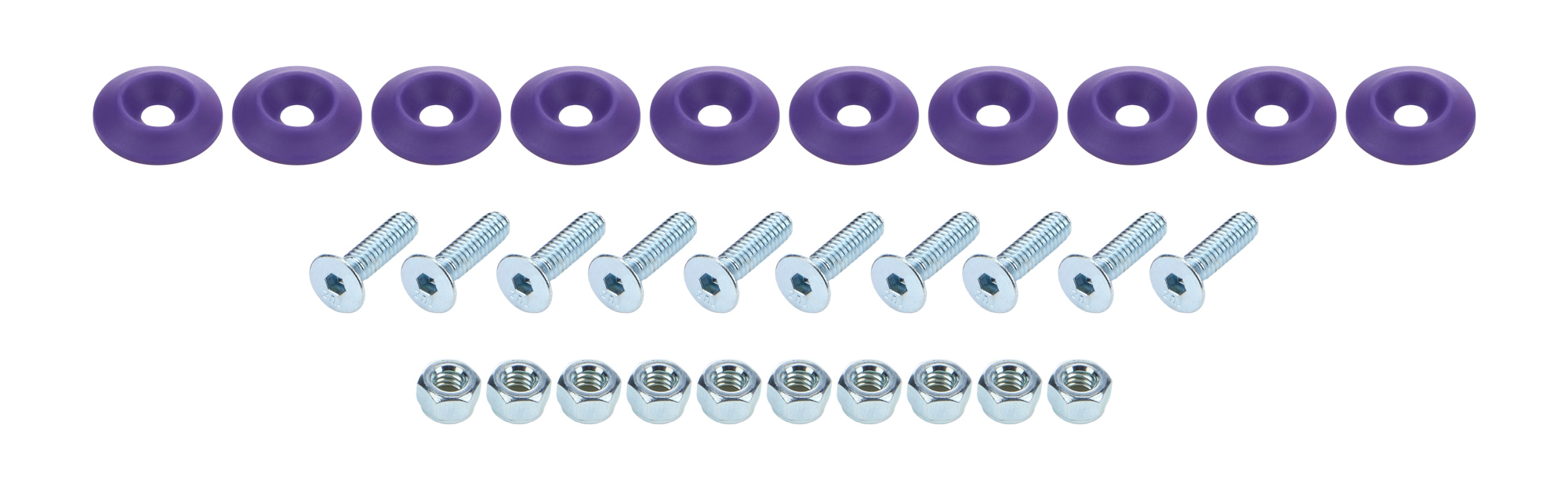 Body Bolt Kit – 1/4-20 in Thread – 1 in Long – Allen Head – Bolts / Countersunk Washers / Lock Nuts Included – Plastic / Steel – Purple / Zinc Oxide – Set of 10