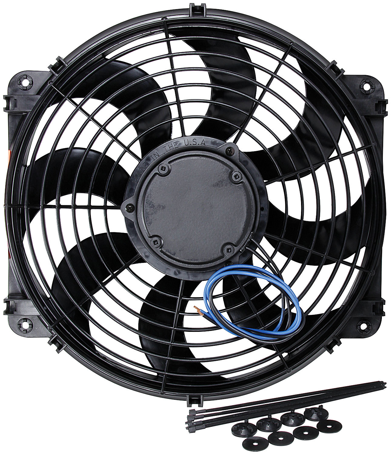 Electric Cooling Fan – 14 in Fan – Push / Pull – 1530 CFM – 12V – Curved Blade – 13.75 x 14.625 in – 3.75 in Thick – Plastic – Kit