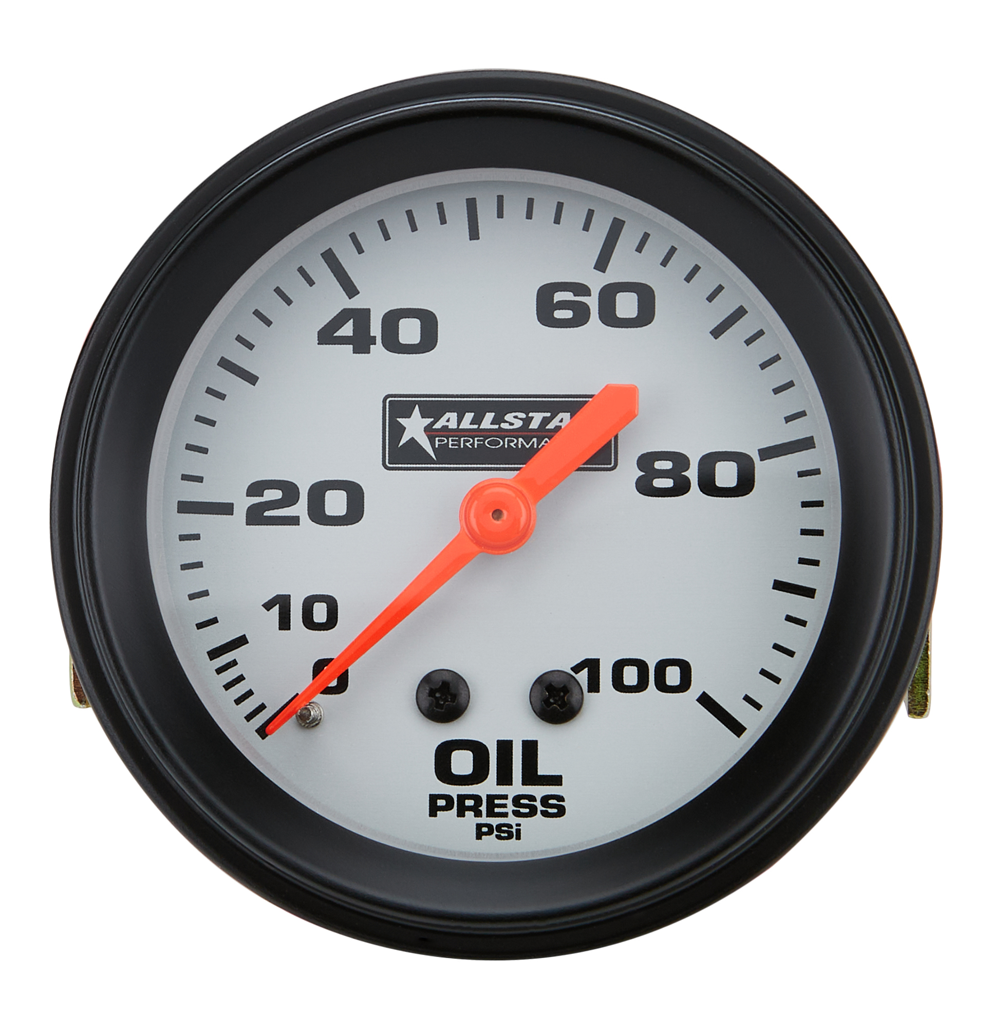 Oil Pressure Gauge – 0-100 psi – Mechanical – Analog – Full Sweep – 2-5/8 in Diameter – Silver Face – Each